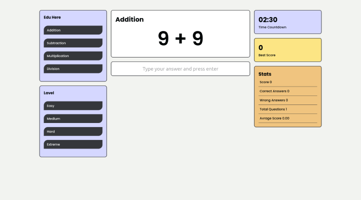 "Math Master" adalah permainan mengasyikkan yang menguji kemampuan matematika Anda, pemain akan diminta untuk menyelesaikan soal dalam waktu terbatas, dengan fitur antarmuka pengguna yang jelas. Setiap pertanyaan ditampilkan di tengah layar, memungkinkan pemain untuk dengan mudah membaca dan mengetik jawaban mereka. Selain itu, pemain dapat memantau kemajuan mereka melalui statistik real-time mengenai skor yang diperoleh dan waktu yang tersisa.